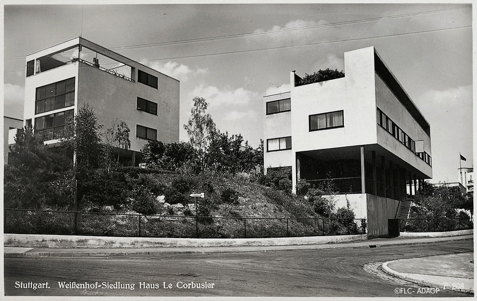 Les 5 points de l’architecture de Le Corbusier, concrétisés par la Villa Savoye (1928). Rencontre avec Lucien Baizeau suite à l’exposition Deutscher Werkbund à Stuttgart en Allemagne. Souhaitant découvrir les nouvelles techniques de construction, ce dernier est invité à visiter les projets de Le Corbusier à Paris.